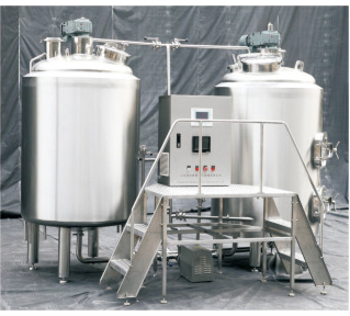 精釀啤酒實(shí)驗(yàn)設(shè)備包括機(jī)架和安裝在機(jī)架上的冰水罐、糖化罐、發(fā)酵罐和冷卻系統(tǒng);產(chǎn)品的冰水罐有冰水內(nèi)罐和冰水外罐,冰水內(nèi)罐和冰水外罐之間安裝有水處理裝置;產(chǎn)品的冰水內(nèi)罐和糖化罐之間、糖化罐和發(fā)酵罐以管道相連,管道上安裝有閥門、流量計和麥汁泵;產(chǎn)品的糖化罐和發(fā)酵罐中安裝有攪拌機(jī)、加熱機(jī)構(gòu)、溫度傳感器和冷卻機(jī)構(gòu),產(chǎn)品的發(fā)酵罐上還有觀察窗、出酒口、壓力表、壓力調(diào)節(jié)表和試酒口;產(chǎn)品的冷卻系統(tǒng)包括制冷機(jī)組、冰水泵、三通閥門、流量計、水壓表、安裝于糖化罐和發(fā)酵罐中的降溫盤管。精釀啤酒實(shí)驗(yàn)設(shè)備適用于各種精釀啤酒配方的實(shí)驗(yàn)和開發(fā),成本小,功能齊全。