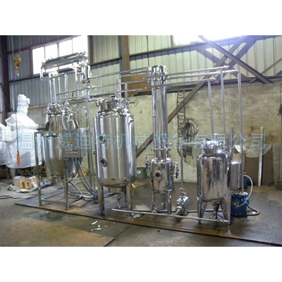 在單效單臺生產(chǎn)時利用單效生產(chǎn)時間短、速度快、操作簡便的優(yōu)勢,在有效利用能源(提取液溫度在90度左右時濃縮真空度在-0.08Mpa時沸點溫度為60度采用單效為佳)充分發(fā)揮單效的優(yōu)勢可緩解生產(chǎn)急需。利用冷凝冷卻器的面積大可以進行單效或組合式濃縮的單臺生產(chǎn),在兩臺分別同時生產(chǎn)是單效的生產(chǎn),如若回收溶媒可通過真空保護系統(tǒng)中的板式緩沖罐進行操作。