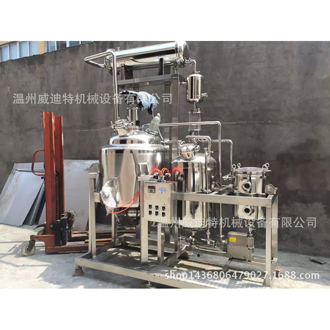 植物提取罐將準(zhǔn)備好的處方藥放入提取罐,在一定時間內(nèi)一次浸泡5-10倍(根據(jù)溶劑性質(zhì)和工藝要求而定的藥品量),然后打開蒸汽閥加熱并常用的夾套加熱,在沸騰并提取一定時間后(僅在用水提取芳香油時才進(jìn)行直接蒸汽加熱),從提取槽底部提取的熱提取物可以通過過濾器屏幕連續(xù)過濾到過濾器。輸入集中器。在濃縮過程中產(chǎn)生的蒸汽進(jìn)入冷凝器,成為冷凝液,并作為新的溶劑噴入萃取罐。