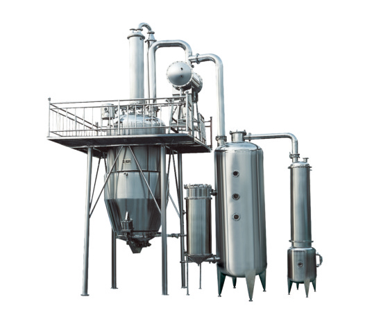 投料后經(jīng)過一定時間的煮提后,即可將較高溫度的提取液經(jīng)過濾進(jìn)入濃縮器,二次蒸汽經(jīng)冷凝后進(jìn)入集液器后用泵回送到提取罐中,提取罐產(chǎn)生的蒸汽作為蒸發(fā)器的熱源,使提取時產(chǎn)生的蒸汽得到充分利用,所以該套設(shè)備在節(jié)能方面性能十分不錯。溶劑從上到下通過藥材層溶解藥材中的可溶物到提取罐底部,又被抽入濃縮器中濃縮,重復(fù)上述過程,從而形成新溶劑,然后經(jīng)提取濃縮大循環(huán)經(jīng)往返多次后提取完成(提取液到無色),此時提取液停止進(jìn)入濃縮器,濃縮器繼續(xù)進(jìn)行直到完成所需比重。