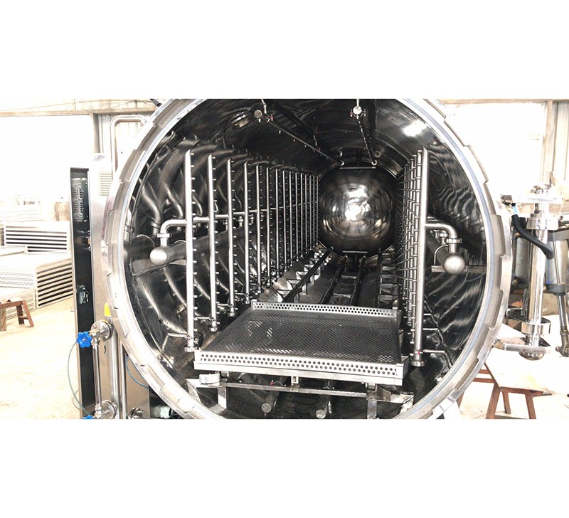 該設(shè)備由鍋體、鍋蓋、開啟裝置、鎖緊模塊、安全聯(lián)鎖裝置、軌道、滅菌框、蒸汽噴管及若干管口等組成、鍋蓋密封采用充氣式硅膠耐溫密封圈,密封可靠,使用壽命長(zhǎng)。具有受熱面積大,熱效率高、加熱均勻、液料沸騰時(shí)間短、加熱溫度容易控制等特點(diǎn)、殺菌鍋主要用于食品行業(yè)、醫(yī)藥等各領(lǐng)域。