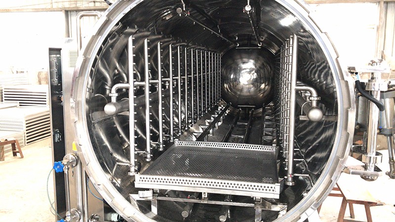 該設(shè)備由鍋體、鍋蓋、開啟裝置、鎖緊模塊、安全聯(lián)鎖裝置、軌道、滅菌框、蒸汽噴管及若干管口等組成、鍋蓋密封采用充氣式硅膠耐溫密封圈,密封可靠,使用壽命長(zhǎng)。具有受熱面積大,熱效率高、加熱均勻、液料沸騰時(shí)間短、加熱溫度容易控制等特點(diǎn)、殺菌鍋主要用于食品行業(yè)、醫(yī)藥等各領(lǐng)域。
